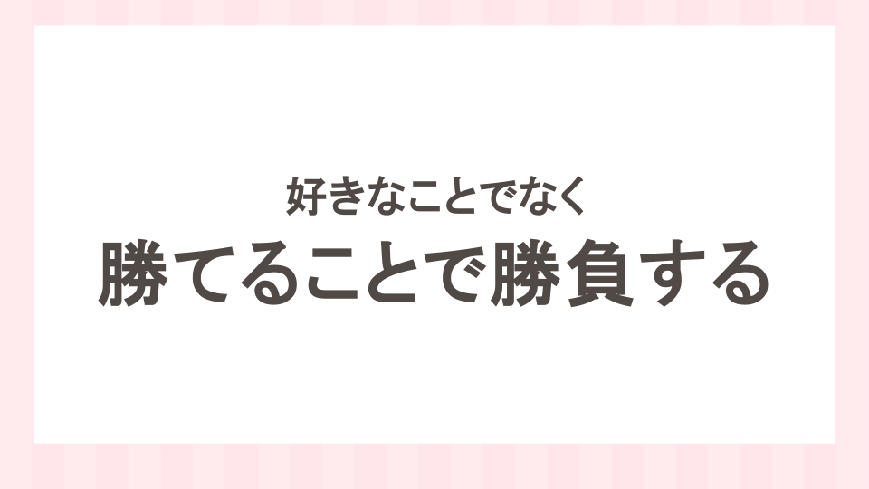 勝てる場所で戦うからこそ、無理なく続けることができ、結果として、好きなことも守れるようになるのです。