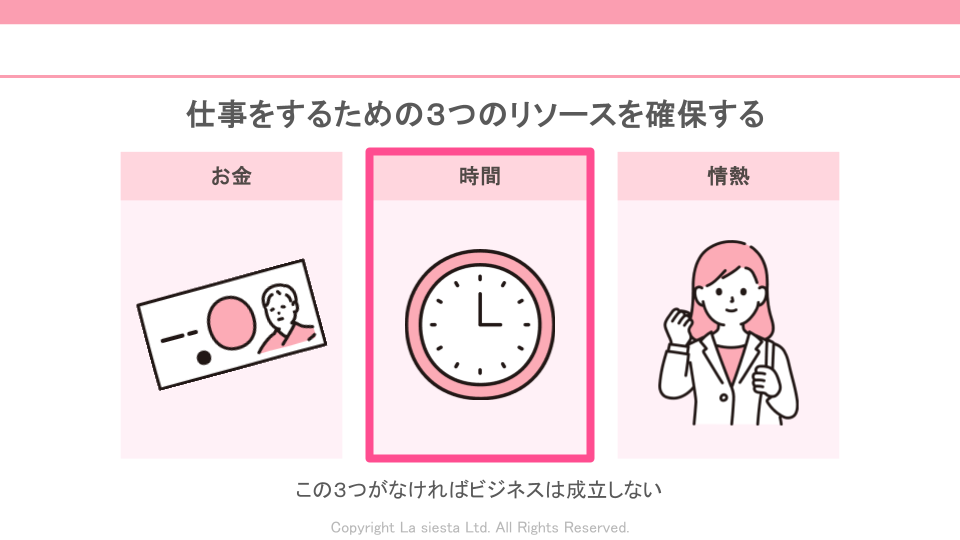 ビジネスを続けていくためには、最低限確保しなければならない「3つのリソース」があります。