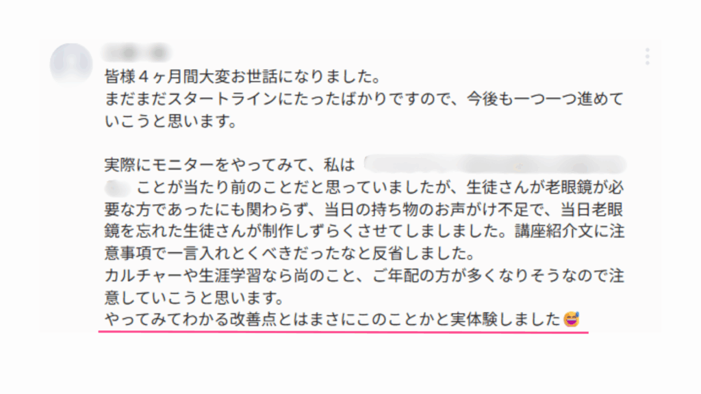 また、外部講師として活動するよりも挑戦しやすく、まずは小さく経験を積みたい方にとって最適なステップになります。